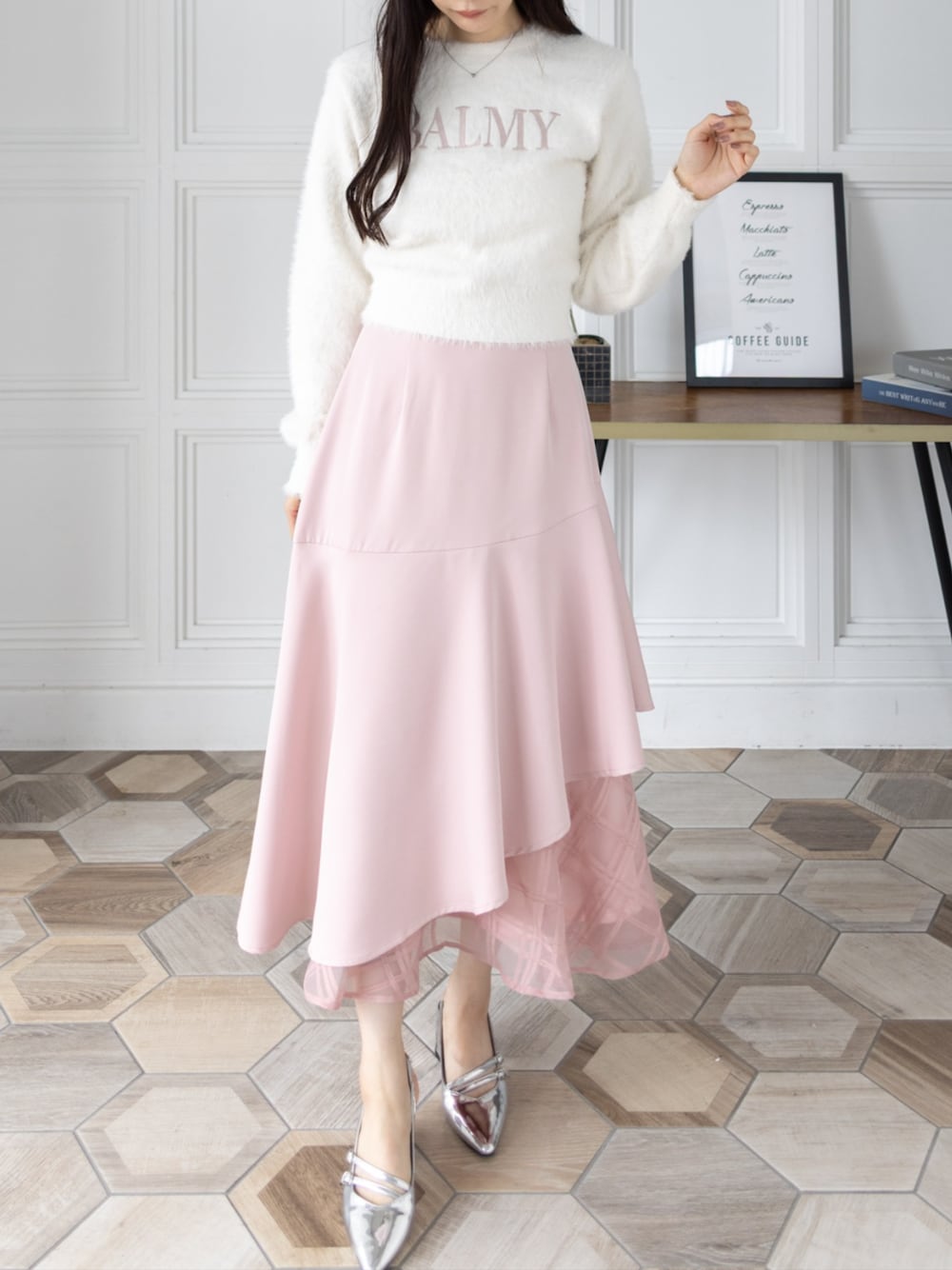 ロゴニットとティアードスカートがガーリーで 甘めなピンクコーデです