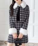ファー付きツイードセットアップで華やかなクラシカルコーデ