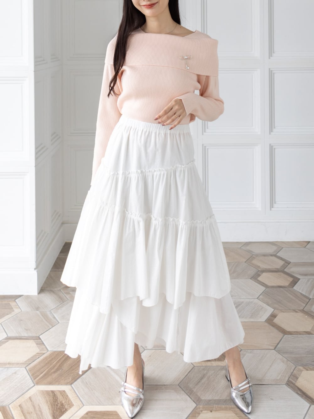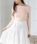 ピンクのトップスと白のティアードスカートで 優しげフェミニンコーデ