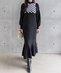 ギンガムチェックがアクセントのワンピースを 主役にシックで大人可愛い印象です