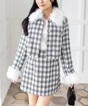 ファー付きツイードセットアップで冬の華やかガーリースタイル完成
