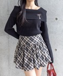 チェックミニと黒トップスで甘さ控えめなガーリースタイルに