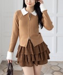 ブラウンのワントーンで秋らしくガーリーに仕上げたコーデ