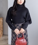 黒タートルとチェックマーメイドスカートの上品レトロコーデ
