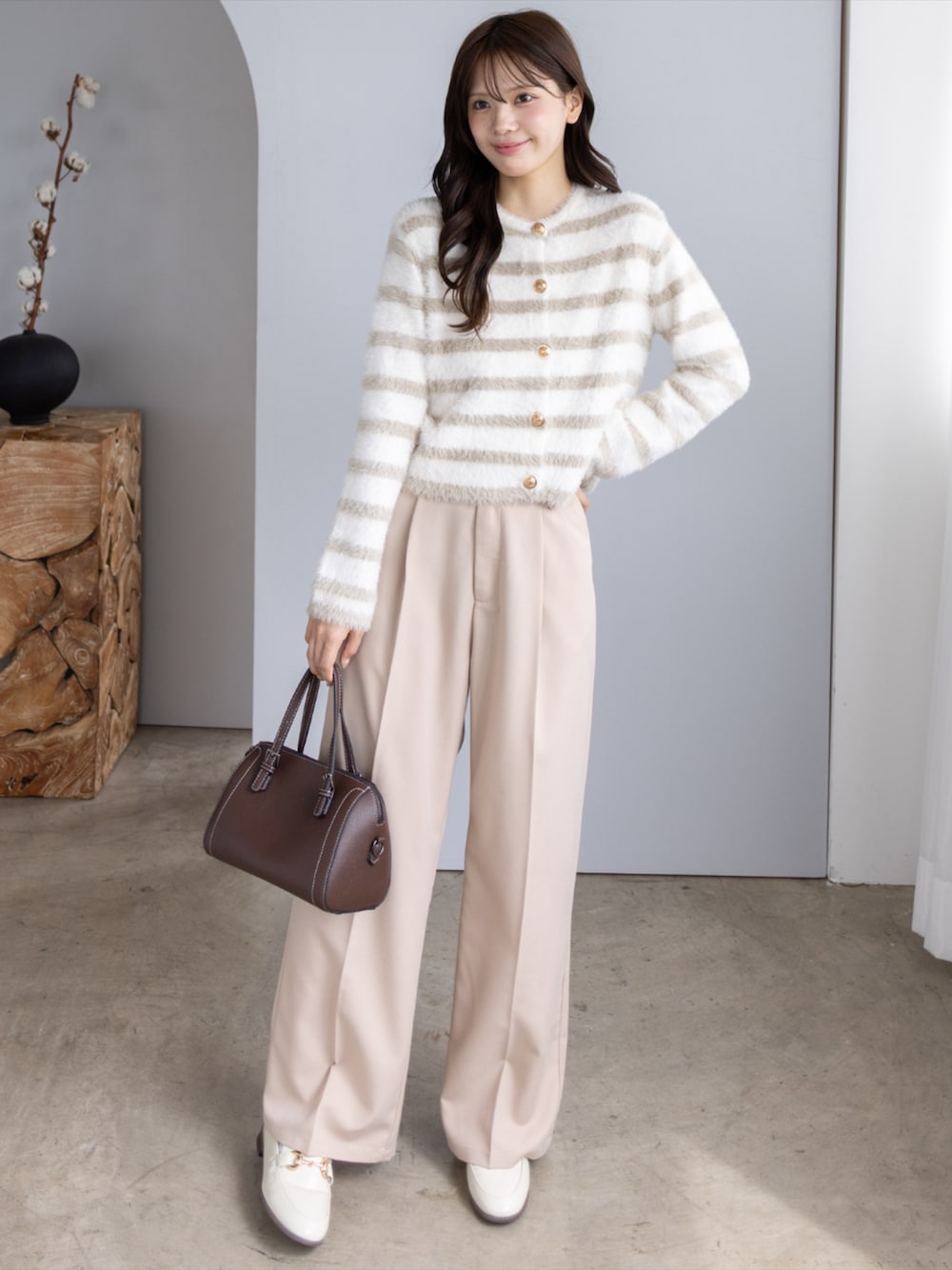 ボーダーカーデとワイドパンツの大人カジュアルコーデ