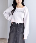 ロゴニットとブラックデニムスカートのシンプルカジュアルコーデ