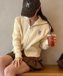ベージュのジップニットにブラウンフリルショーパンを合わせた カジュアルコーデ