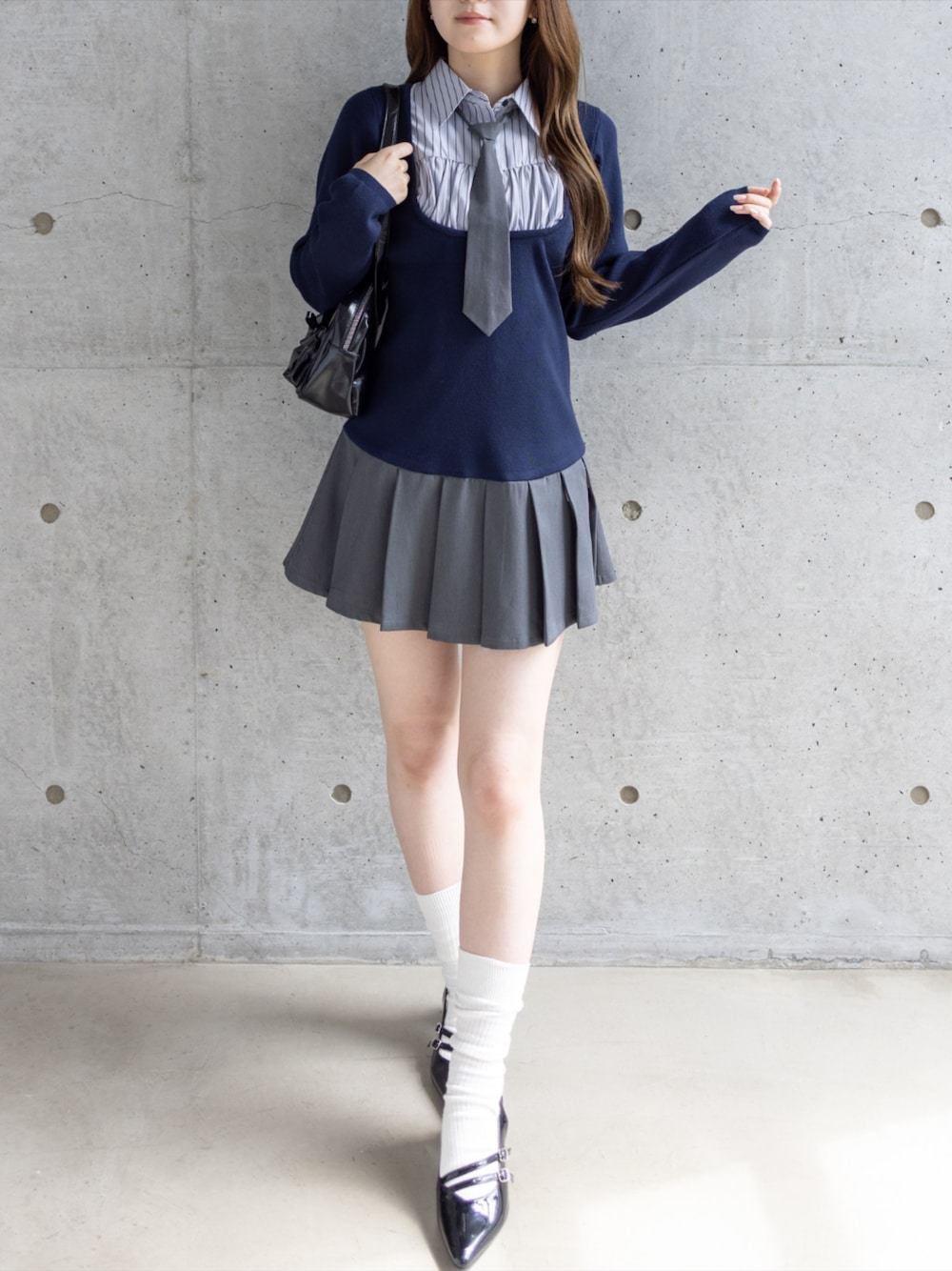 ネクタイ付きでプリーツデザインのワンピースです♪ スクールムード漂うガーリーコーデに♡