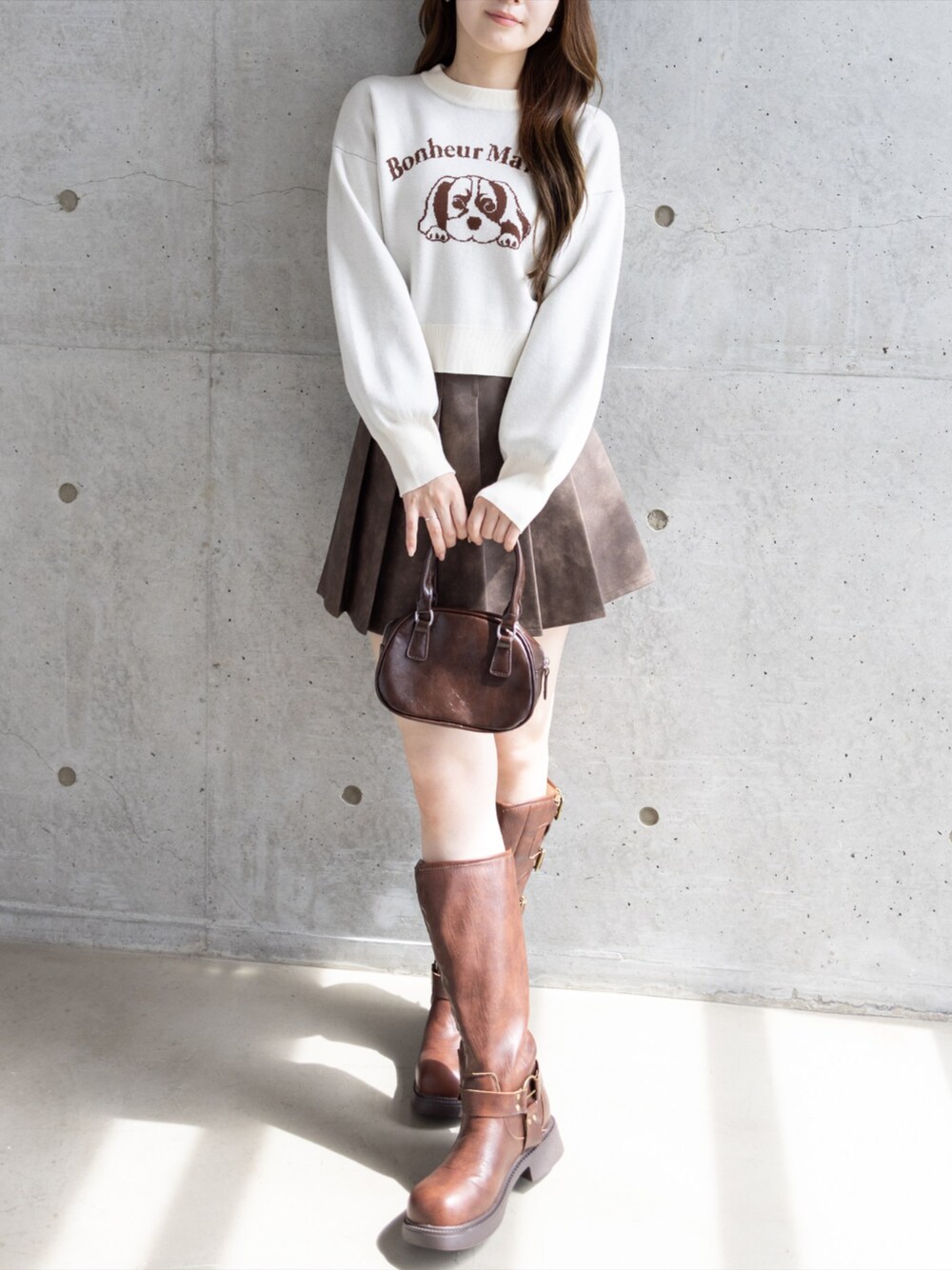 わんちゃんデザインが可愛いニットで作る♪ カジュアルガーリーコーデ