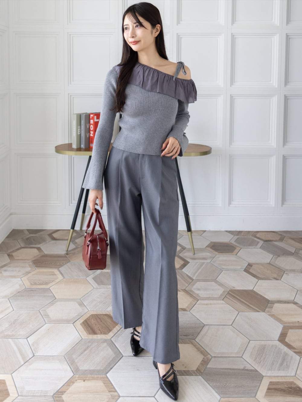 アシメデザインが映える上品で大人フェミニンなコーデ