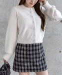 ツイードミニにパールボタンを合わせた上品ガーリーコーデ