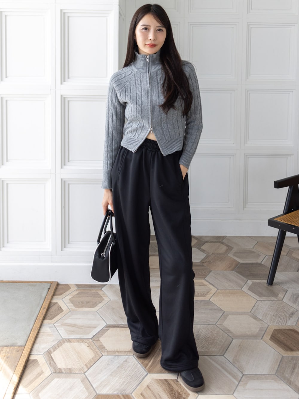 ジップデザインがポイントの大人シンプルカジュアルコーデ