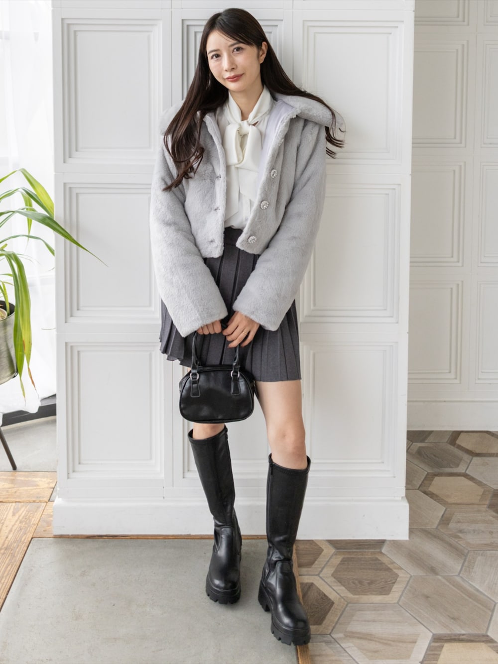 リボンブラウス×ファージャケットで仕上げる クラシカルガーリースタイル
