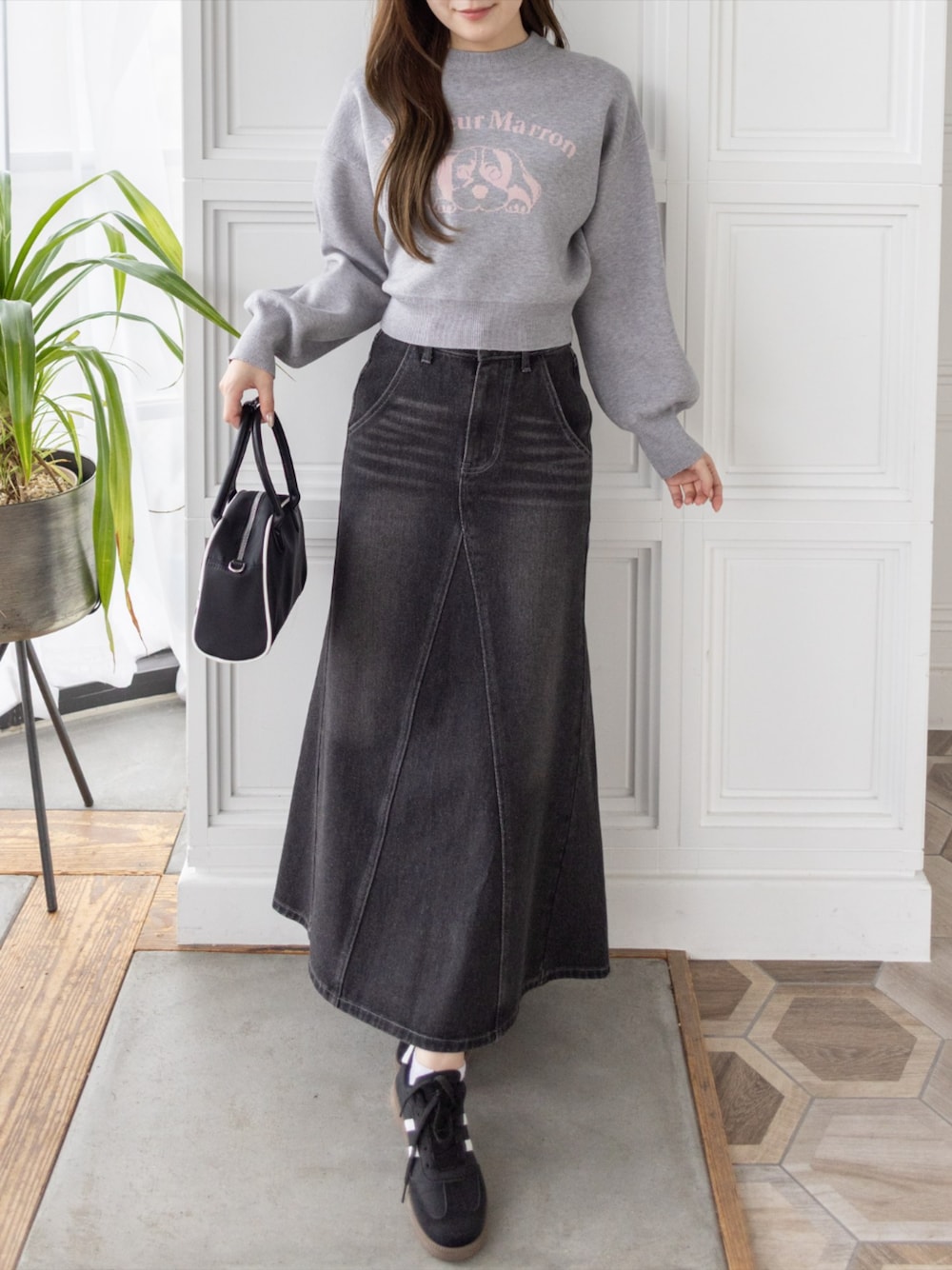 ロゴスウェット×デニムマーメイドでつくる カジュアルフェミニンコーデ