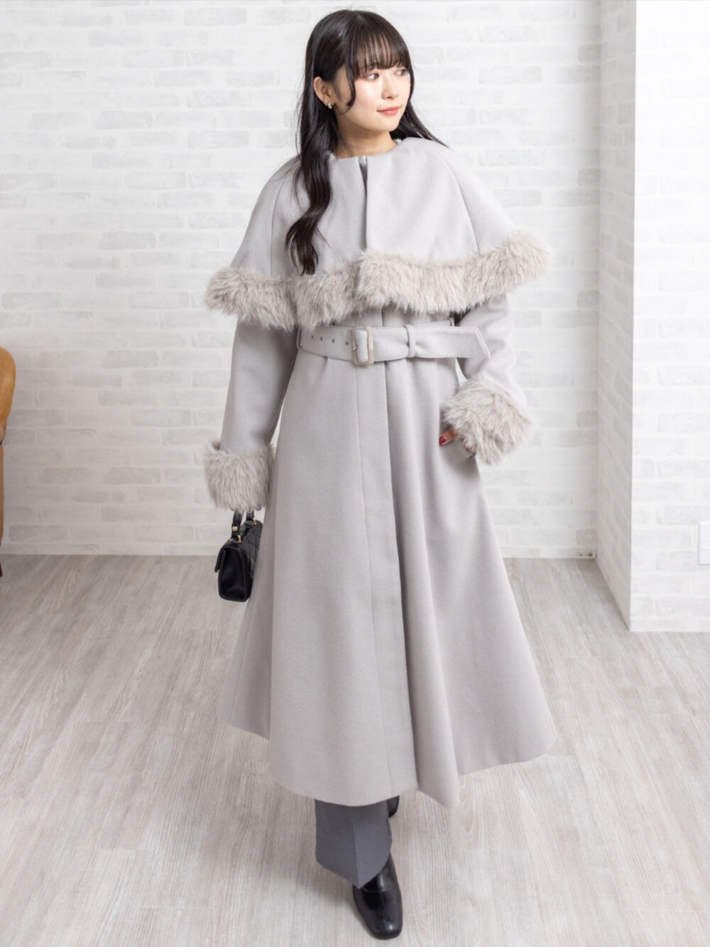 フェイクファーのケープデザインが華やかに揺れる クラシカルエレガントコーデ