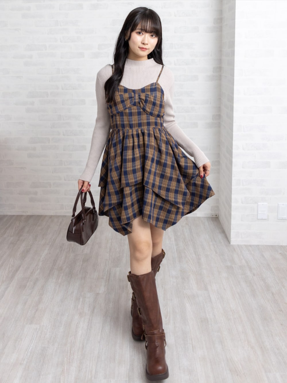 レイヤード風チェックワンピでつくるガーリークラシカルコーデ