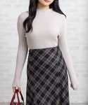 チェック柄フレアスカートを主役にした上品レディスタイル