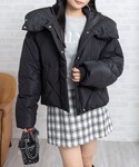 ショートダウン×チェックミニでつくる 冬のモノトーンカジュアルコーデ