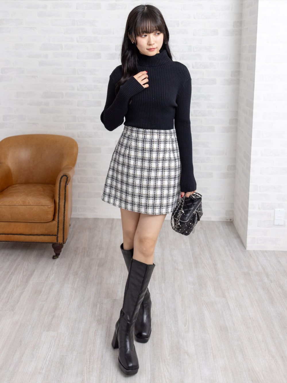 リブタートル×チェックミニで仕上げる大人ガーリーな冬コーデ