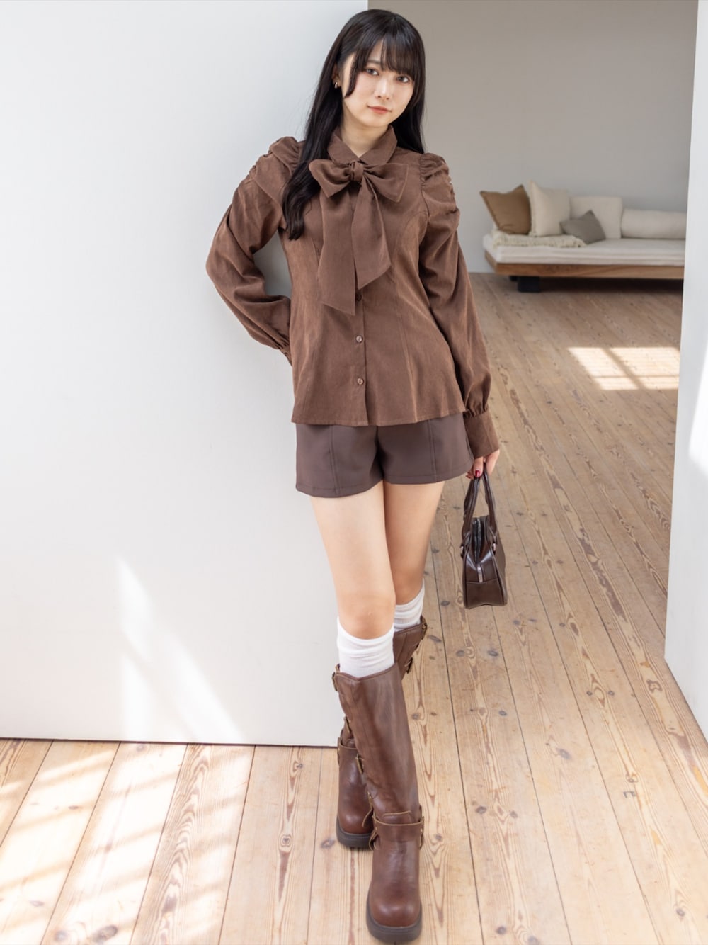 大きめリボンが目を引くブラウスを主役にした ガーリーコーデ