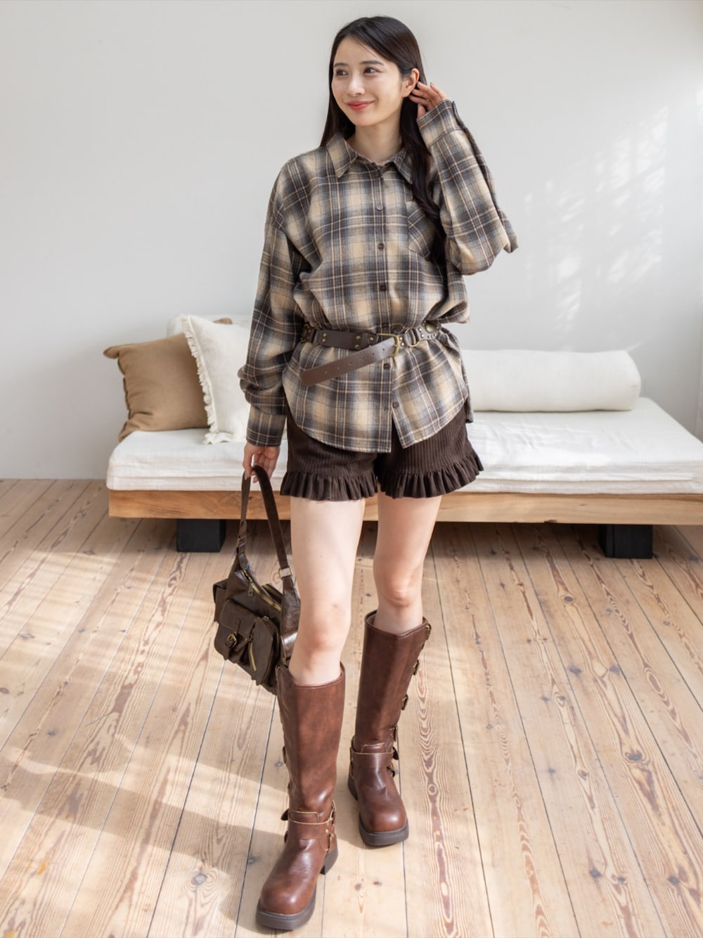 ヴィンテージライクなチェックシャツ×フリルショートパンツで こなれ感漂う甘辛コーデ