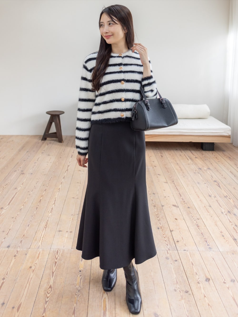 ボーダーニット×マーメイドスカートでつくる上品フェミニンスタイル