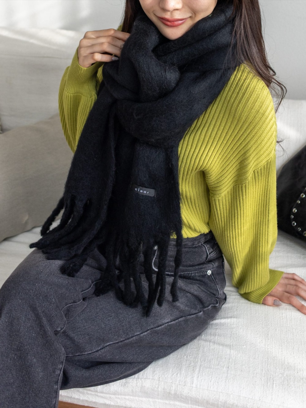 ボリュームマフラーで季節感を添えた大人カジュアルコーデ