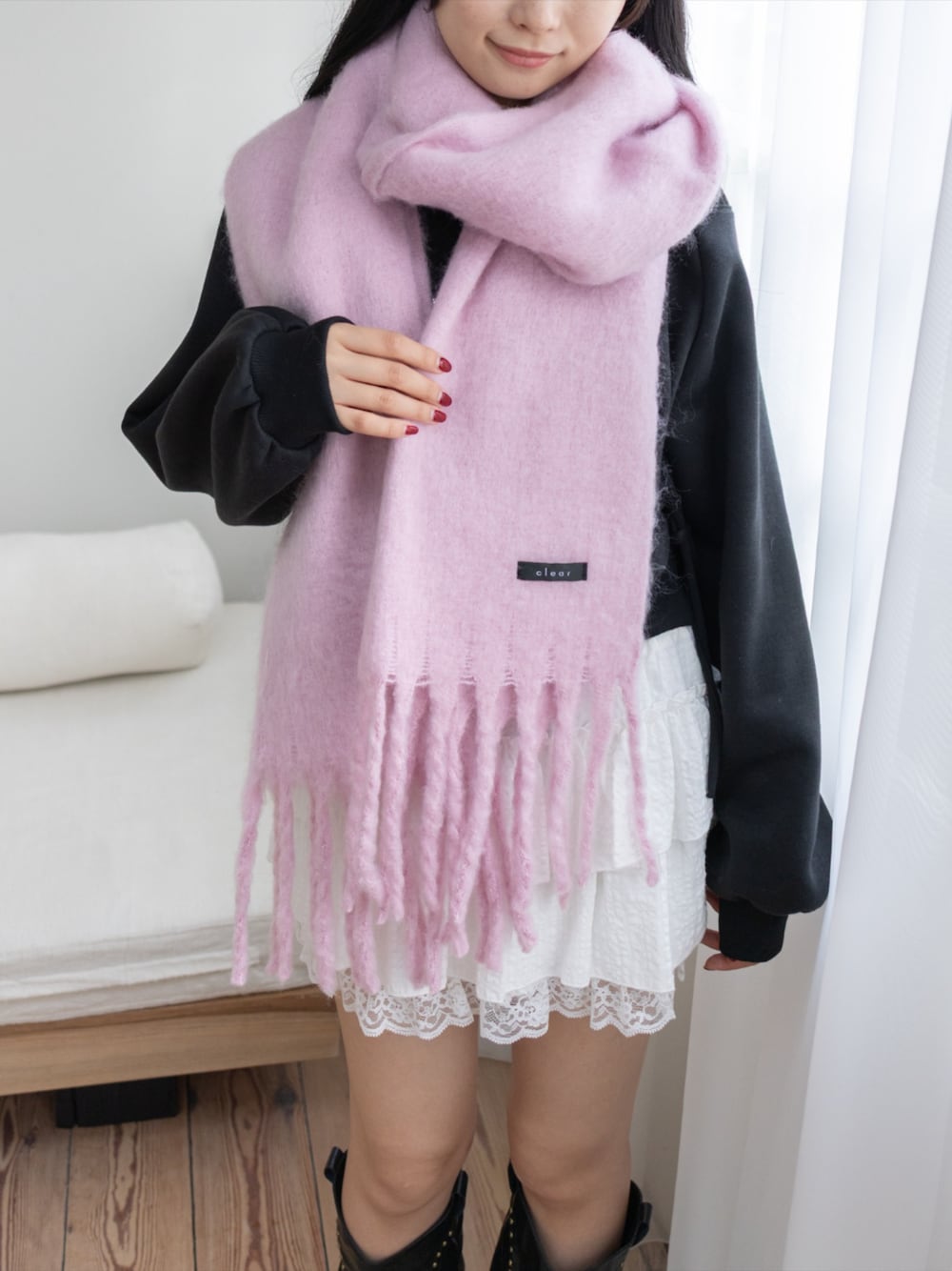 ボリュームマフラーを主役にしたガーリーカジュアルコーデ