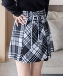 モノトーンでまとめた上品ガーリーなチェックミニスカートコーデ