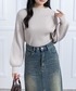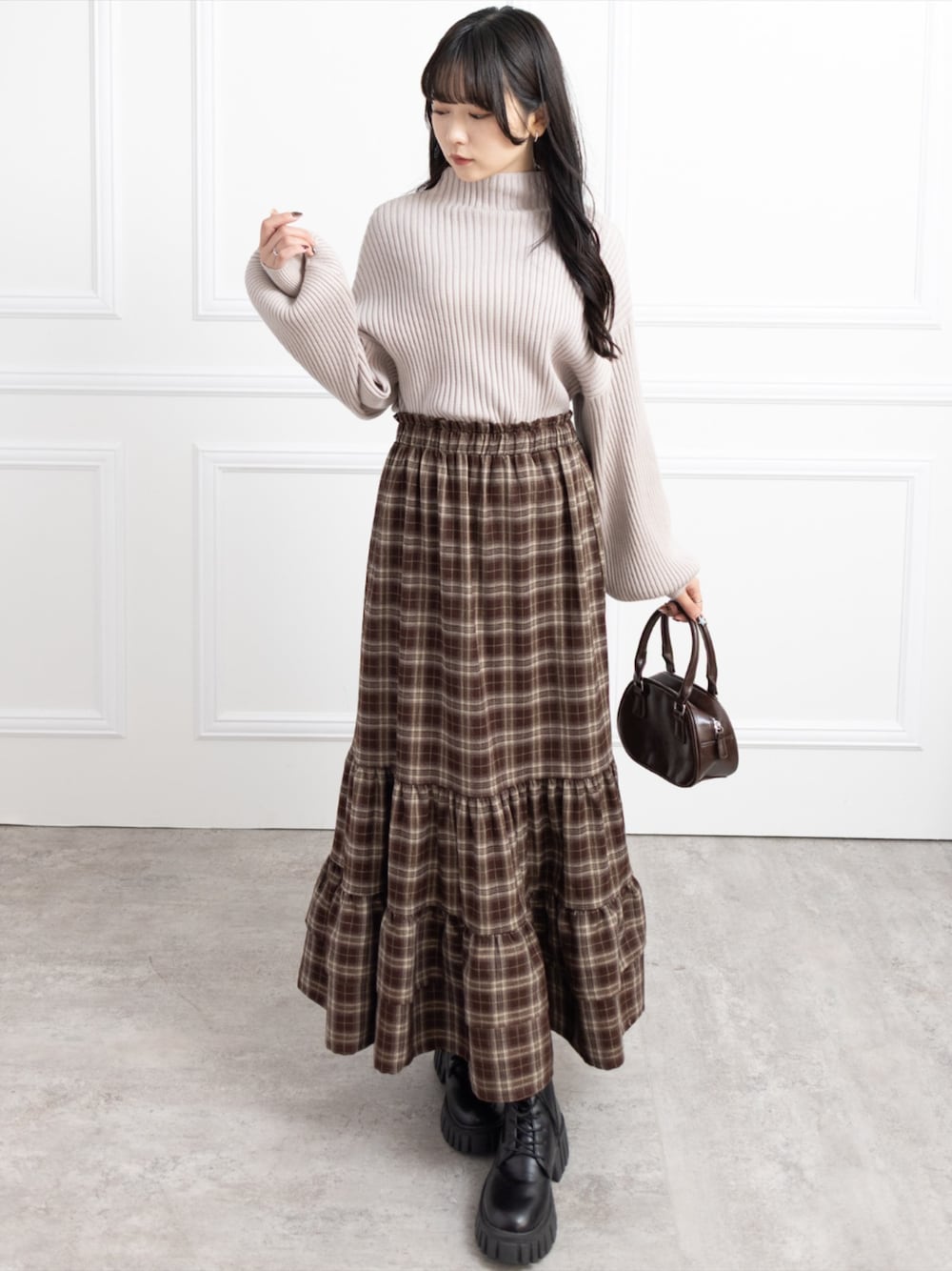 ゆるシルエットのリブニットに チェックティアードスカートを合わせた 大人ガーリーなゆる甘コーデ