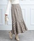 フェザートップスにチェック柄スカートを合わせて 上品で女性らしくまとめたコーデです
