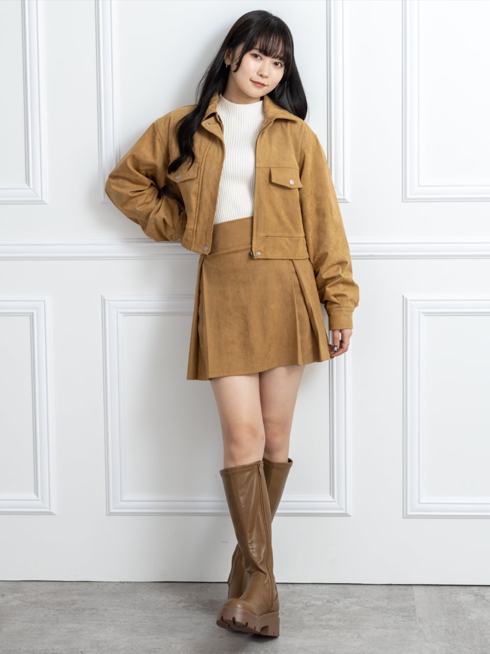 セットアップにロングブーツを合わせて 今っぽくバランスよく仕上げたコーデです
