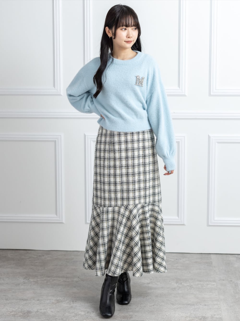 ふんわりニットにチェック柄スカートを合わせて 優しげな大人コーデです