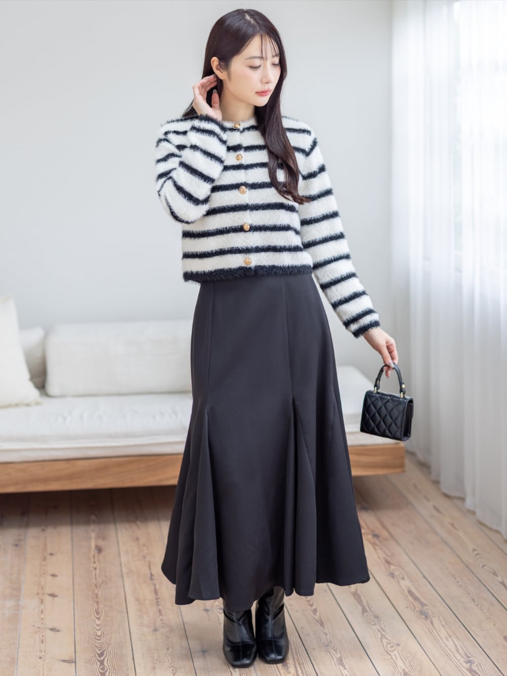 ボーダーカーディガンにフレアスカートを合わせて 大人可愛いフェミニンに♡