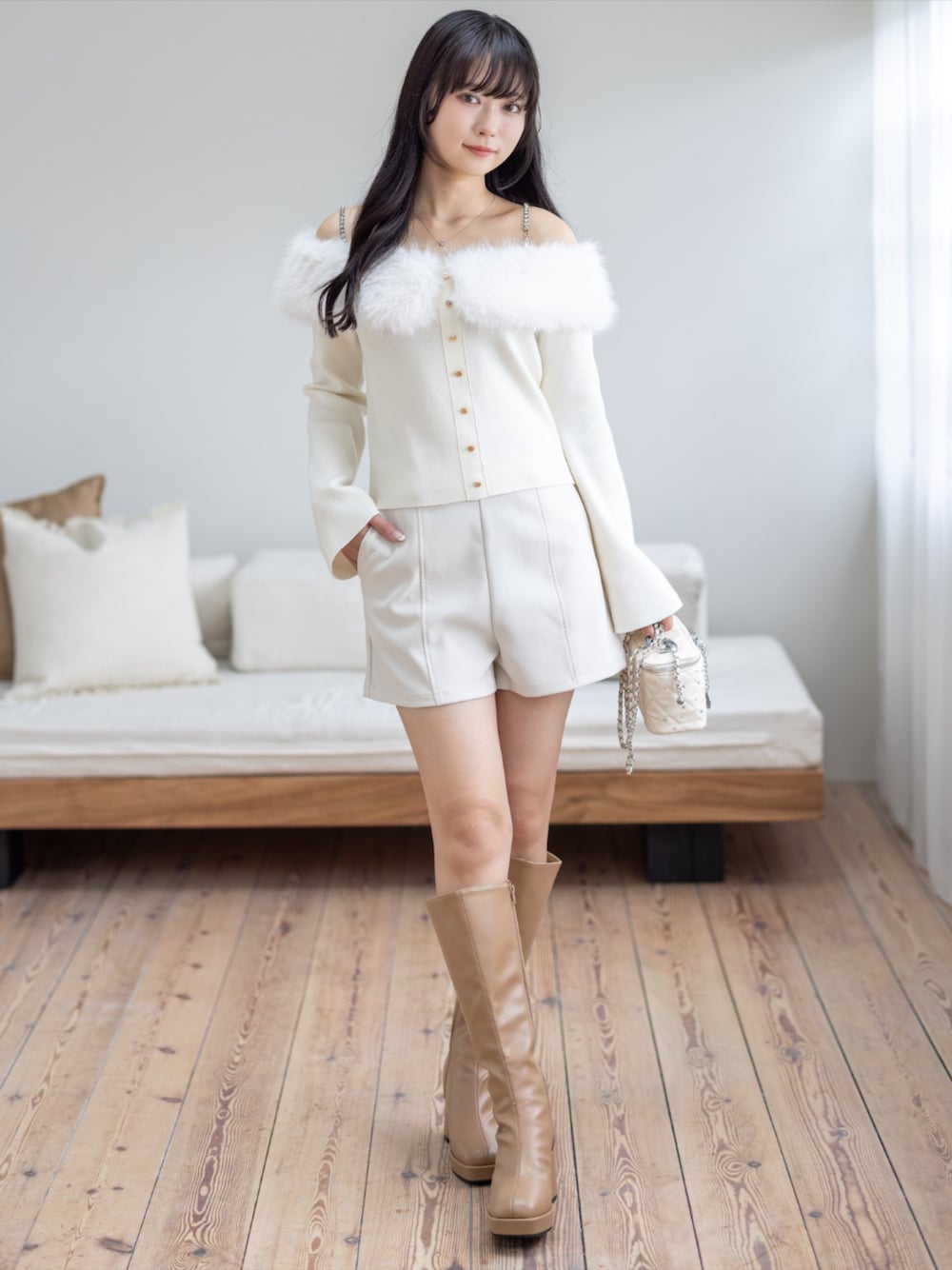 フェザーの存在感が映えて上品さも可愛さも両立した大人フェミニンコーデ🤍✨