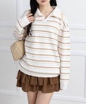 ボーダーニットとブラウンパンツで落ち着いた大人カジュアル