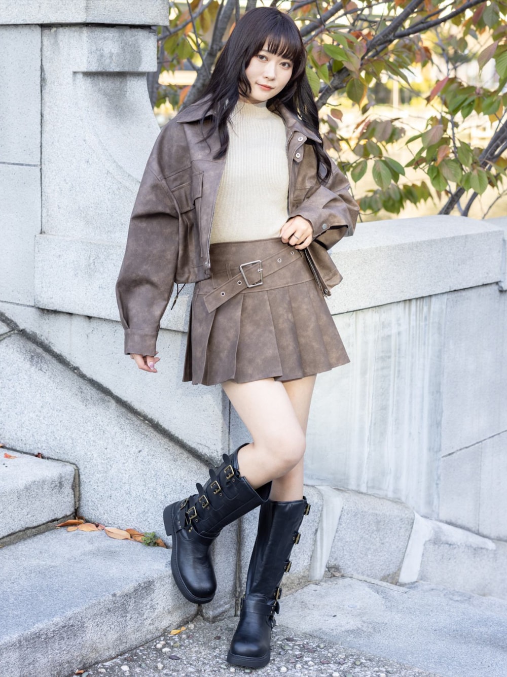 レザー調セットアップで大人カジュアルに仕上げたコーデ