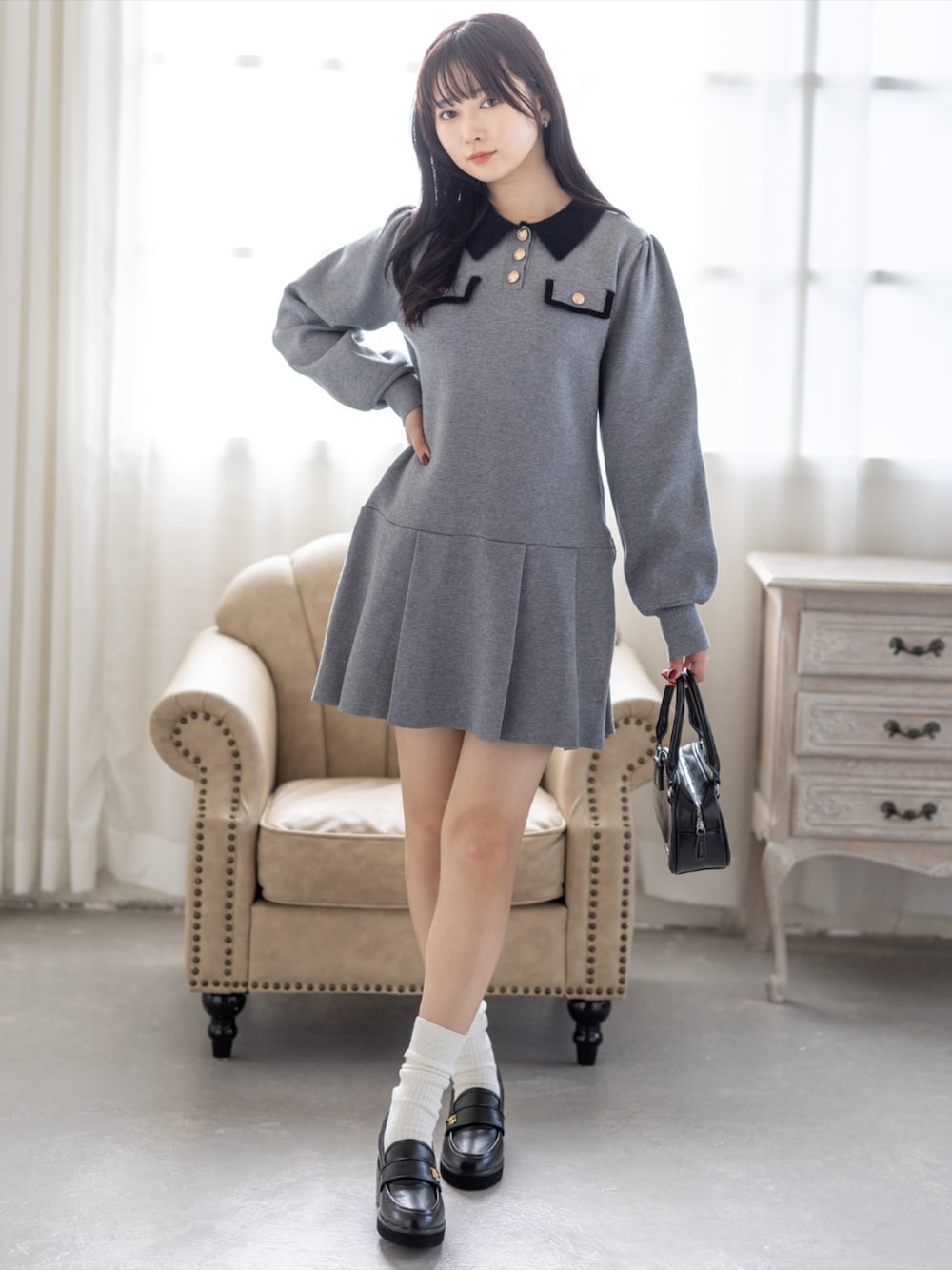 襟デザインが映えるきれいめガーリーワンピースコーデ