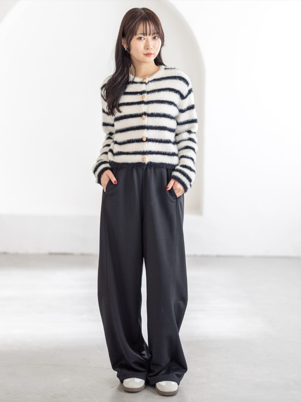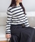 ボーダーニットをモノトーンでまとめた大人カジュアルコーデ