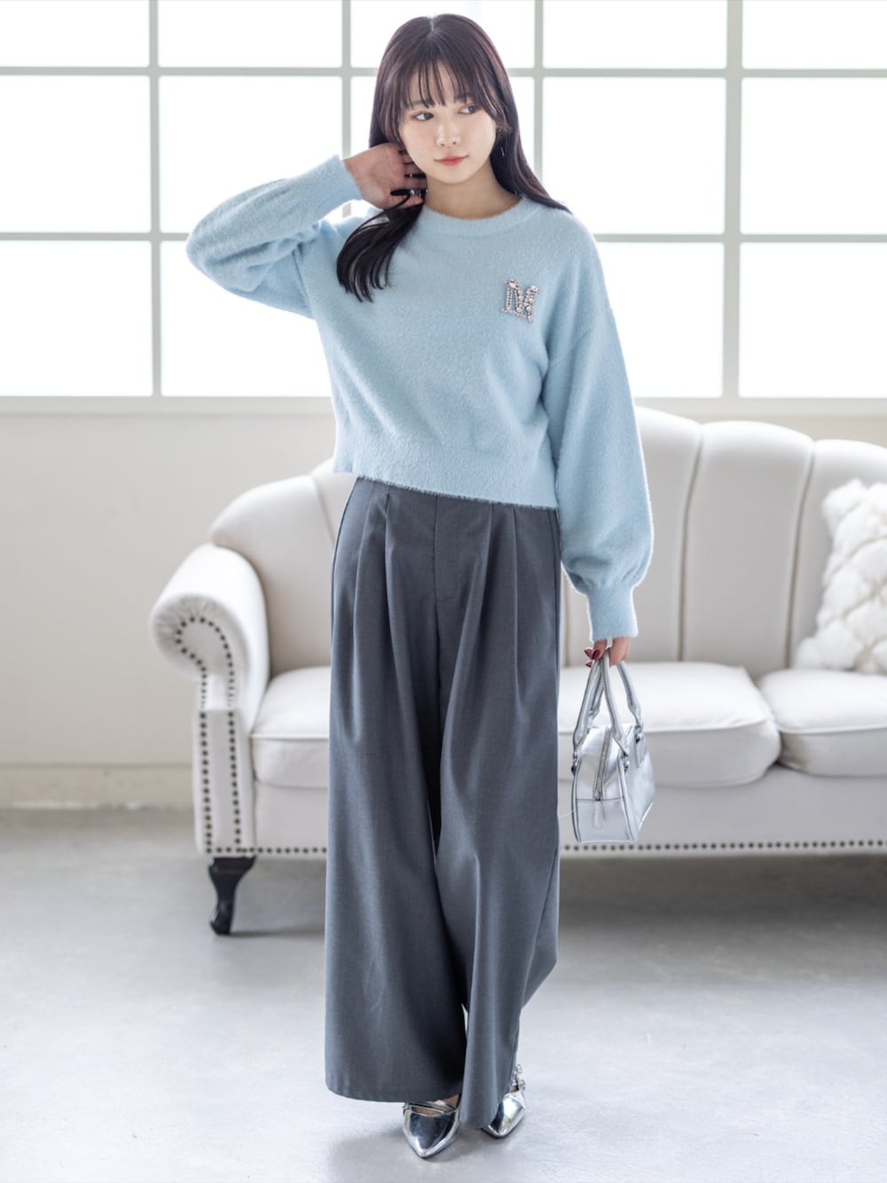 淡色ニットをきれいめパンツで バランスよくまとめた大人カジュアルコーデ