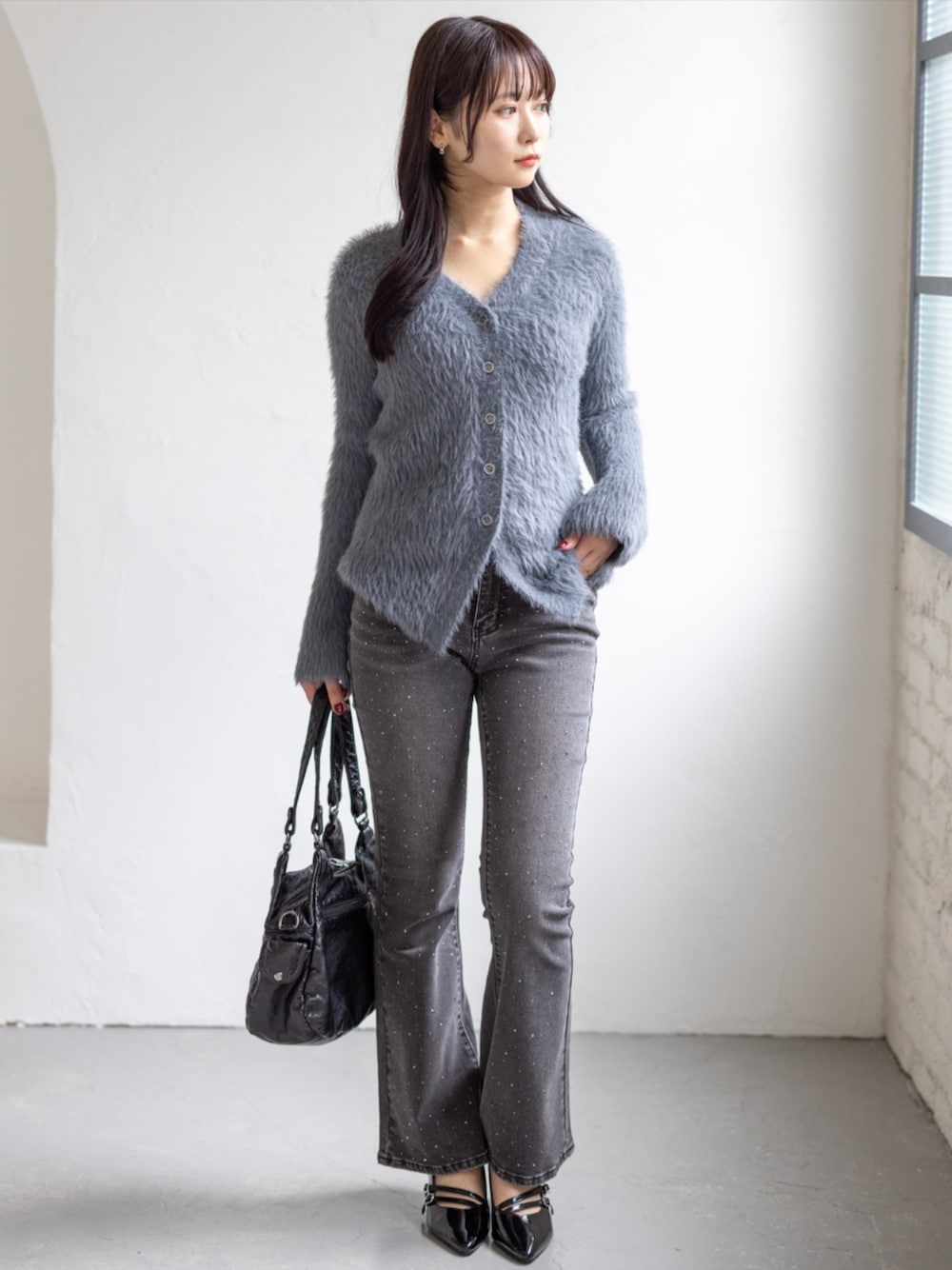 シャギーカーディガンで季節感を出した大人カジュアルコーデ