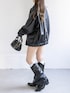 オーバーサイズのレザージャケットは、ダボっとしたシルエットが今の気分。 あえてミニ丈のチェックスカートを合わせて、メリハリをつけてみました! スカートの裾からチラッと見えるレースが、ハードになりすぎないポイントです🥀 足元はスタッズが効いたデザインブーツでエッジを効かせて。 友達とカフェ巡りや、ショッピングに行く時におすすめのコーデです☕️