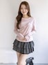 春らしいペールピンクのトップスは、デコルテが綺麗に見える変形デザインがポイント。 ボトムスにはフリルとレースが可愛いチェック柄のミニスカートを合わせました🖤 甘くなりすぎないように、足元は黒のロングブーツで引き締めるのが鉄則! 「絶対領域」も作れて、デートで褒められること間違いなしのスタイルです🥺💕