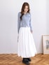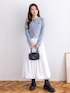 今季も注目の「ダブルジップニット」! 下のジップを少し開けて、お腹をチラ見せしたり抜け感を出すのがポイントです✨ ボトムスは、ふんわりとした丸いシルエットが可愛いバルーンスカートを合わせてトレンドライクに。 甘めな白スカートも、ジップデザインや厚底ブーツと合わせることで、スポーティーさがプラスされて今年らしいバランスになります👟