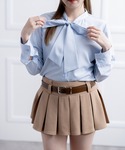 水色の大きなボウタイブラウスに、ブラックのツイードペプラムを重ね着したクラシカルなコーデ🦢💙 着るだけでウエストにくびれができる、優秀なペプラムシルエットのトップス! ショートパンツとセットアップ風に着ることで、ふんわり広がる裾から脚がすらっと細く長く見えます🥺 足元は「白ソックス×ビットローファー」の組み合わせで、少しプレッピーな雰囲気にまとめるのが今のトレンド📚 清楚さとガーリーさが詰まった、春のお出かけにぴったりのスタイルです✨