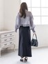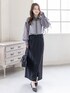 上品な透け感が大人っぽい、グレーのシアーシャツを主役に。 袖のスリットとリボンデザインが、動くたびに華やかな印象を与えてくれます🦢 ボトムスは黒のロングタイトスカートを合わせて、全体をシックなダークトーンでまとめました。 「透け感」と「Iラインシルエット」のおかげで、ダークカラーでも重たくならず、春らしい洗練されたきれいめスタイルに仕上がります🍷