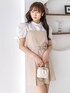 ブラウスにビスチェワンピを重ね着したような、レイヤード風デザインが可愛い一枚♡ ふんわりとしたパフスリーブと、白襟のきちんと感が「清楚なお嬢様」みたいな雰囲気を演出してくれます🦢✨ ホワイトとベージュの淡いラテカラーでまとめることで、甘いデザインでも上品で大人っぽい印象に。 コロンとしたキルティングのバニティバッグを合わせて、クラシカルに仕上げました🩰