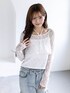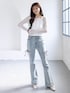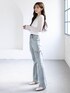 太もものスリットとサイドのリボンデザインが可愛すぎる、主役級のフレアデニム! ボトムスがカジュアルでエッジが効いているので、トップスはあえて甘めな白のレーストップスを合わせて、バランスの良い甘辛ミックスに仕上げました✨ 首元のチョーカー風デザインとレースの透け感が、顔まわりを華やかに見せてくれます🤍 春のお出かけにぴったりな、こなれ感抜群のスタイリングです。
