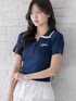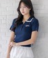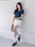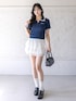 配色ポロニットをレースティアードで合わせた爽やかガーリーコーデ
