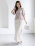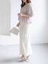 一枚で華やかになる、毛足の長いフェザー(シャギー)素材の半袖トップスが主役! くすみピンクのような絶妙なニュアンスカラーが、大人っぽく上品な印象を与えてくれます✨ トップスがふんわりとしているので、ボトムスはアイボリーのナロースカートですっきりとまとめました。 小物をすべてホワイトで統一することで、春らしく透明感のあるきれいめ淡色コーデの完成です🤍